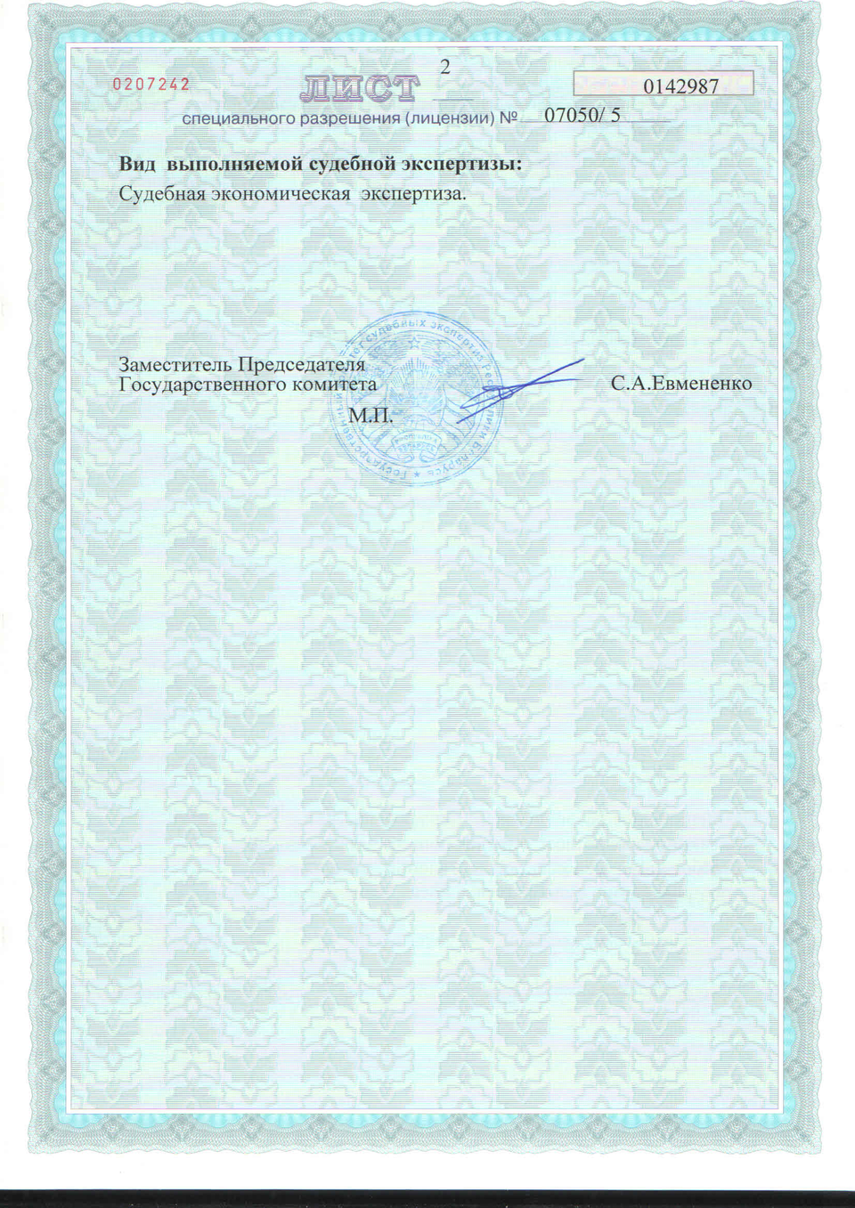 Сведения о документах на право осуществления судебно-экспертной деятельности размещены в государственной информационной системе «Единый реестр лицензий» https://license.gov.by/onelicense/63990, а также в Реестре судебно-экспертных организаций и индивидуальных предпринимателей (Разделы 2-3) и Реестре судебных экспертов, имеющих свидетельство о присвоении квалификации.